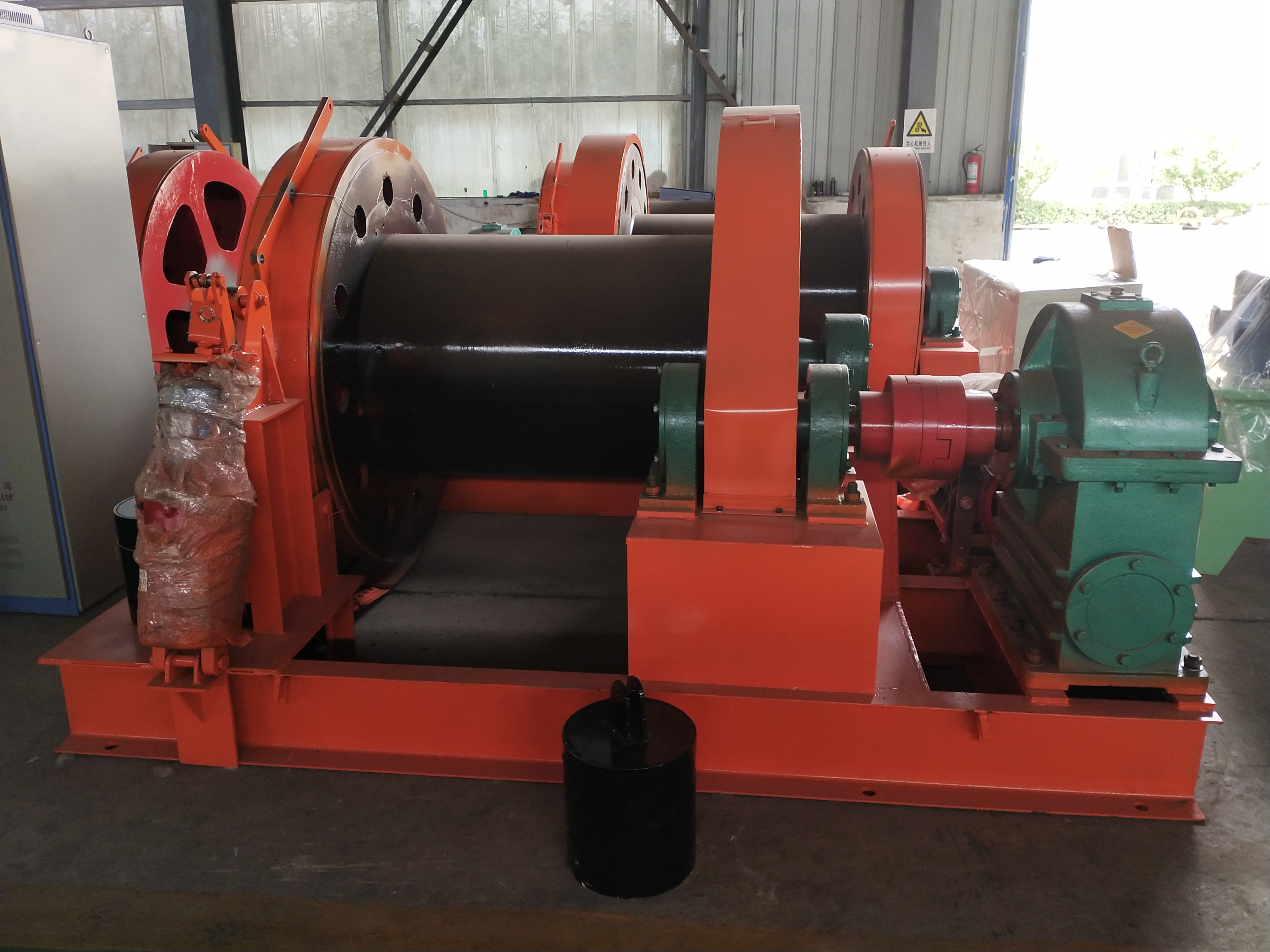 本絞車主要用于煤礦、金屬礦和非金屬礦豎井井筒掘進(jìn)時懸吊吊盤、水泵、水管、注漿泵、風(fēng)筒等掘進(jìn)設(shè)備和張緊穩(wěn)繩,該絞車系雙鋼絲繩懸吊。將減速機(jī)上的差動手把放在差動位置,若張緊穩(wěn)繩,可使兩根穩(wěn)繩的張緊力保持相等;若懸吊水管、注漿管、風(fēng)筒等管類設(shè)備,可保證其被懸吊管類設(shè)備與地面保持垂直的狀態(tài)。如果懸吊吊盤等盤狀設(shè)備,需將其差動手把放在直通位置,才能實(shí)現(xiàn)兩繩繩速的一致。