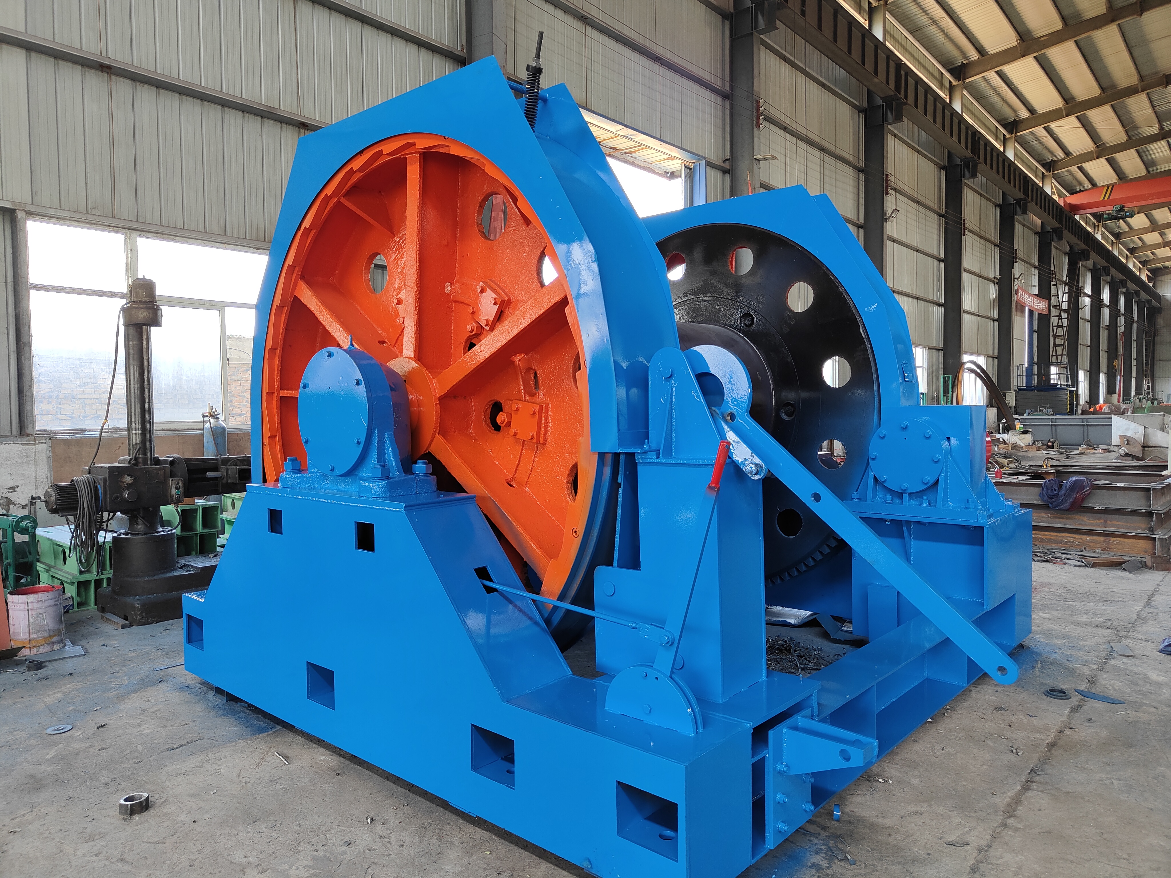 機架采用鋼板和型鋼焊接而成,分主機架和轉動機架兩部分,其聯(lián)接采用圓錐銷和螺栓聯(lián)接,便于運輸與安裝,對基礎無特殊要求。