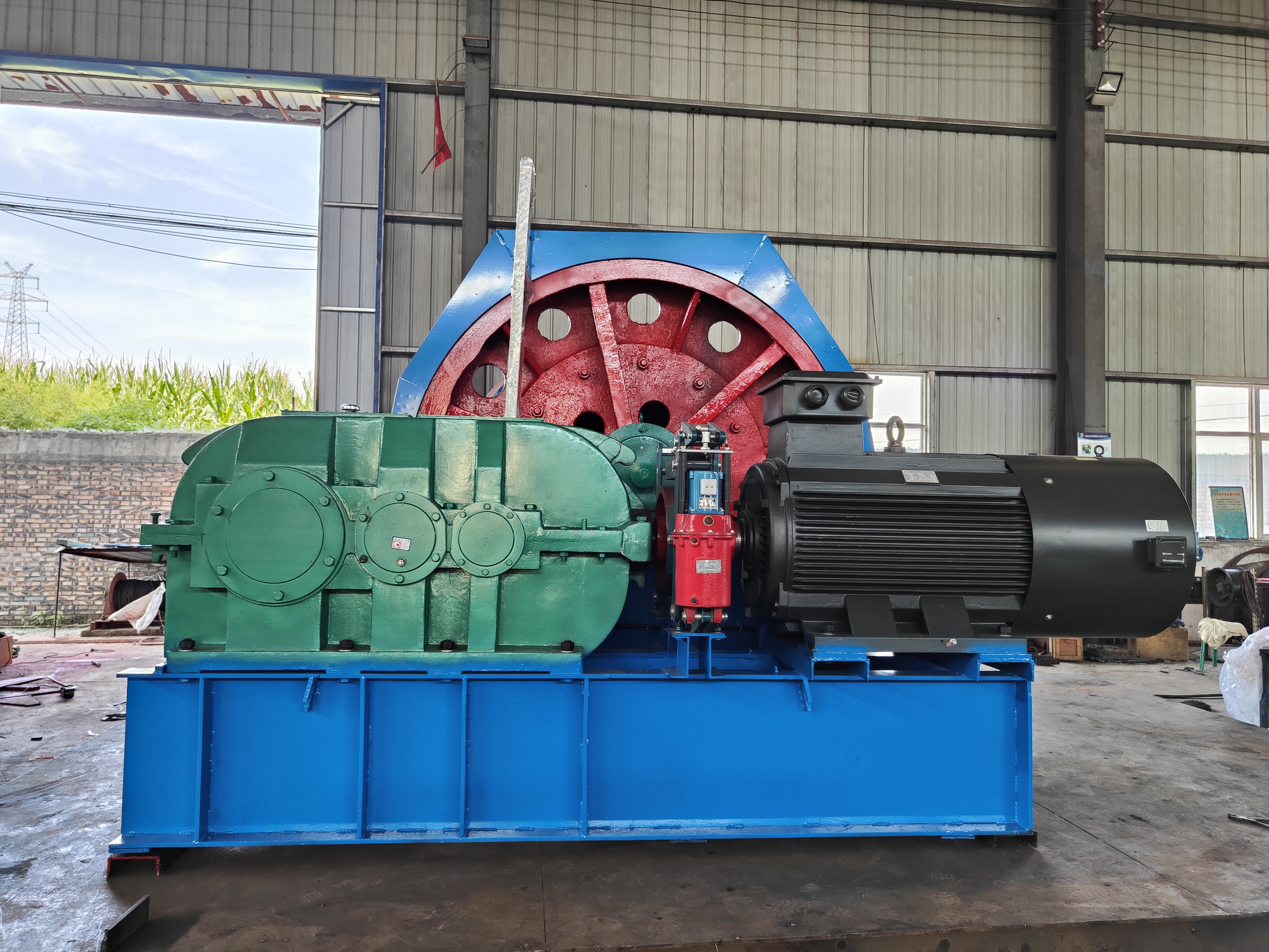 本絞車主要用于煤礦、金屬礦和非金屬礦豎井井筒掘進(jìn)時(shí)懸吊吊盤、水泵、水管、注漿泵、風(fēng)筒等掘進(jìn)設(shè)備和張緊穩(wěn)繩,該絞車系雙鋼絲繩懸吊。將減速機(jī)上的差動(dòng)手把放在差動(dòng)位置,若張緊穩(wěn)繩,可使兩根穩(wěn)繩的張緊力保持相等;若懸吊水管、注漿管、風(fēng)筒等管類設(shè)備,可保證其被懸吊管類設(shè)備與地面保持垂直的狀態(tài)。如果懸吊吊盤等盤狀設(shè)備,需將其差動(dòng)手把放在直通位置,才能實(shí)現(xiàn)兩繩繩速的一致。