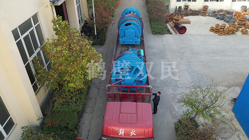 這臺多繩摩擦式提升機為,鶴壁市雙民礦機生產(chǎn)的落地式多繩摩擦式提升機,型號為:JKMD-2.8×4PI 多繩摩擦式提升機。