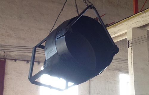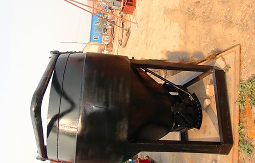 底卸式吊桶是立井井筒鑿井時向砌壁工作面輸送混凝土時用的鑿井設備。底卸式吊桶是立放在平板礦車上用電機車或其他牽引方式往返于井口棚與混凝土集中攪拌站之間。